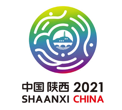 会徽以黄、绿、蓝、紫、红为主色调,其中黄色象征黄土高天,红色象征革命圣地,绿色象征生态文明,蓝色象征现代科技,紫色象征文化魅力,呈现中华民族伟大复兴的深厚历史渊源和广泛现实基础。